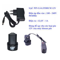 BỘ SẠC PIN 12V LI-LION CHO CÁC LOẠI PIN 12V CỦA MÁY KHOAN PIN - CÓ ĐÈN LED BÁO SẠC ĐẦY VÀ NGƯNG SẠC