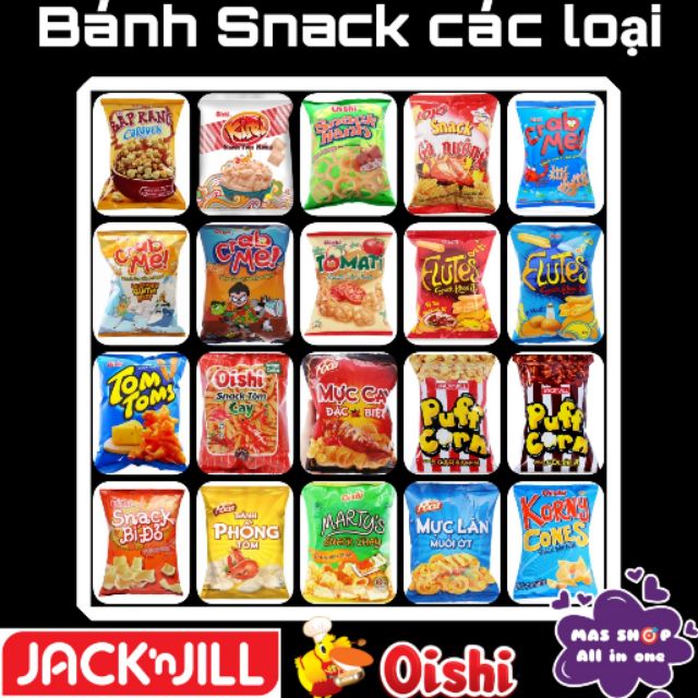 Bánh Snack Oishi® - Orion® - Jack & Jill® các loại (tôm, cua, mực, gà, bò, bắp, hành,...) free ship