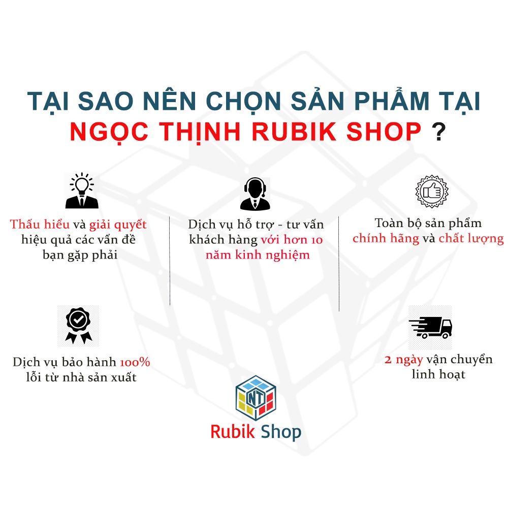 Miễn phí đổi trả nếu bán hàng kém chất lượng. Hiện tại Công thức hướng dẫn giải rubik 2x2x2, 3x3x3,4x4x4, 5x5x5, 6x6x6, Megaminx, Pyraminx và các loại Rubik Khác đang được giảm giá chỉ còn 27,900đ. Số lượng có hạn hãy nhanh tay đặt khi còn hàng bạn nhé